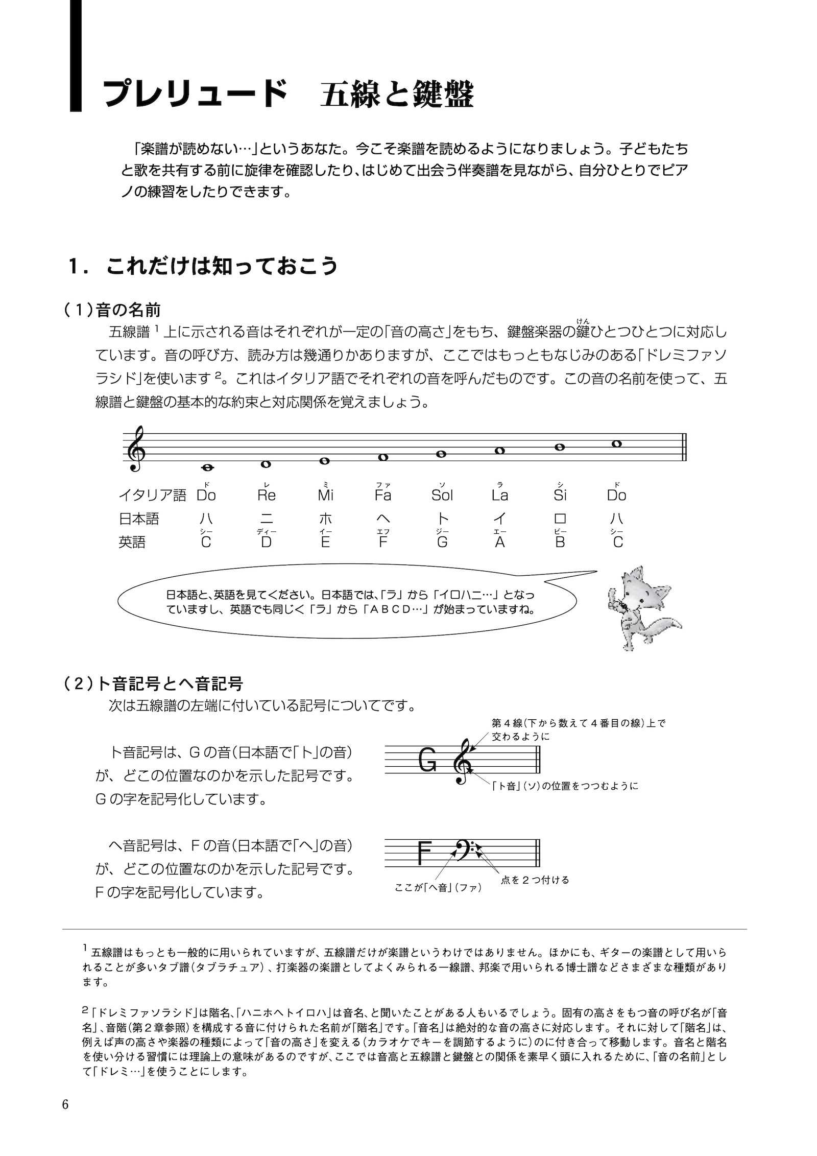 ○五線と鍵盤、リズムと拍子など音楽の基礎的な知識を丁寧に解説し、それぞれに学習したことを確認できるワーク部分を用意している。