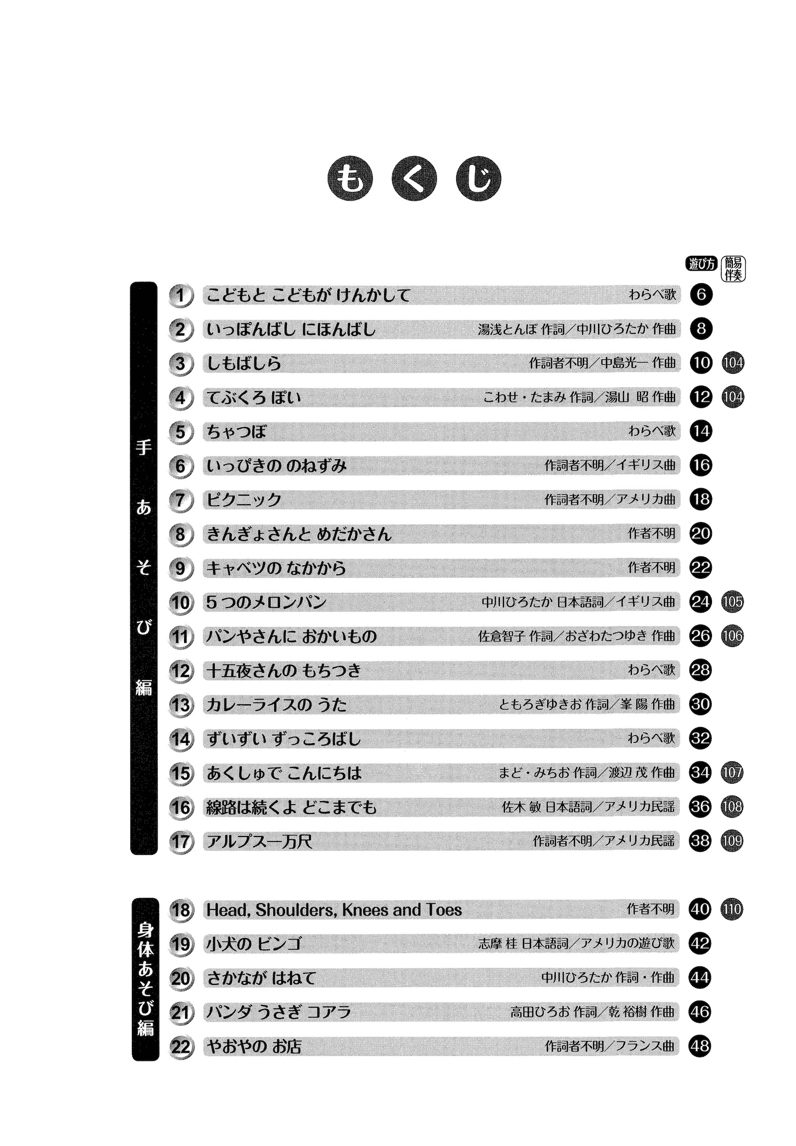 ○各曲に子どもたちの個性を引き出すアドバイス〈あそびのくふう〉を掲載している。