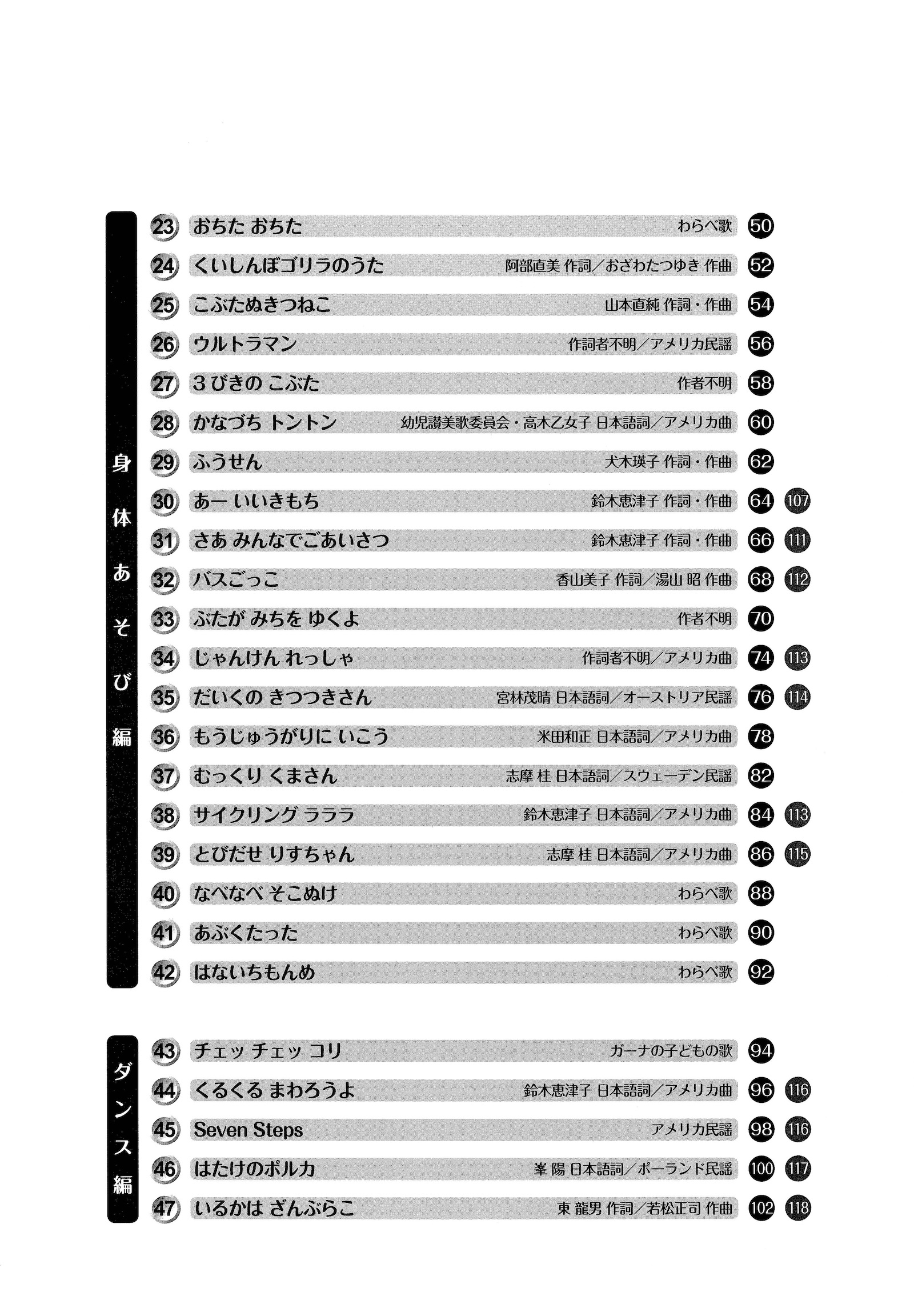○幼稚園教諭・保育士養成課程で学ぶ学生が卒業後も活用できる曲集。