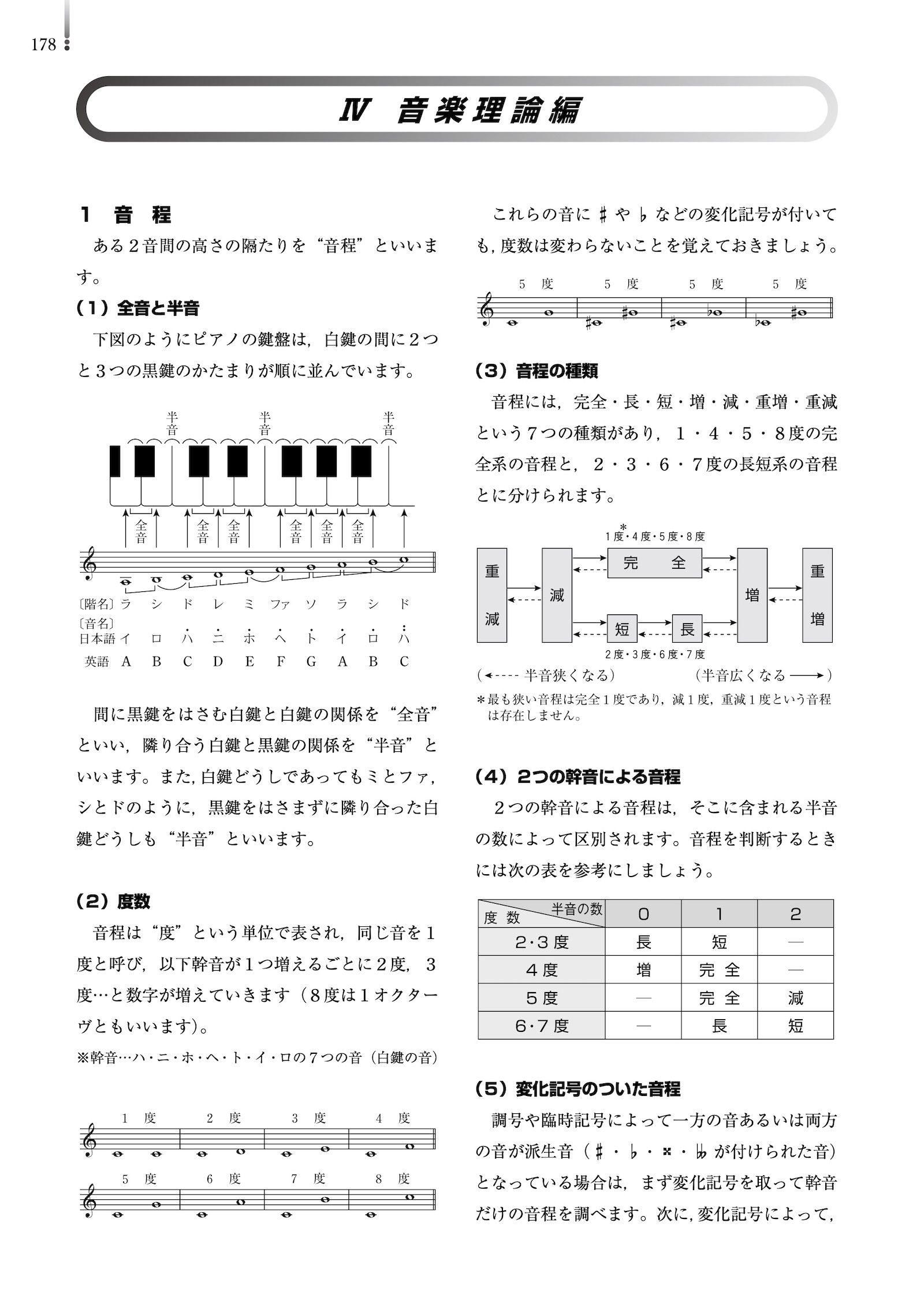 ○〈音楽理論編〉に練習問題と解答が付いている。
