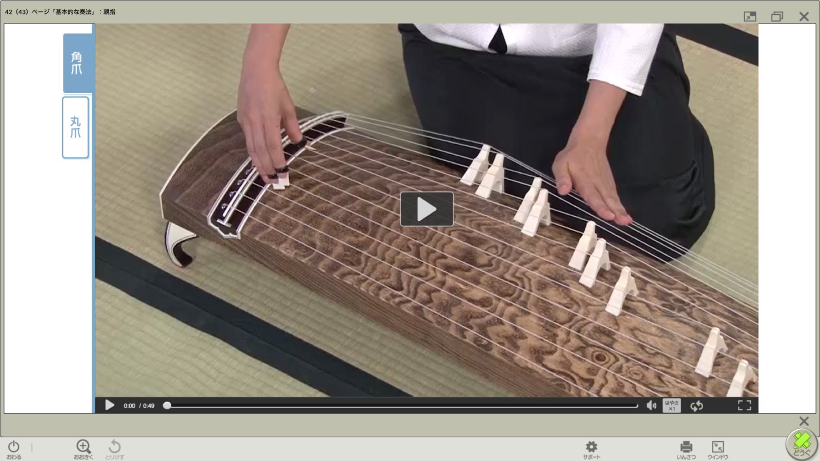 「中学生の器楽」は、一人一人が奏法などを確認できる映像資料を再生できます。