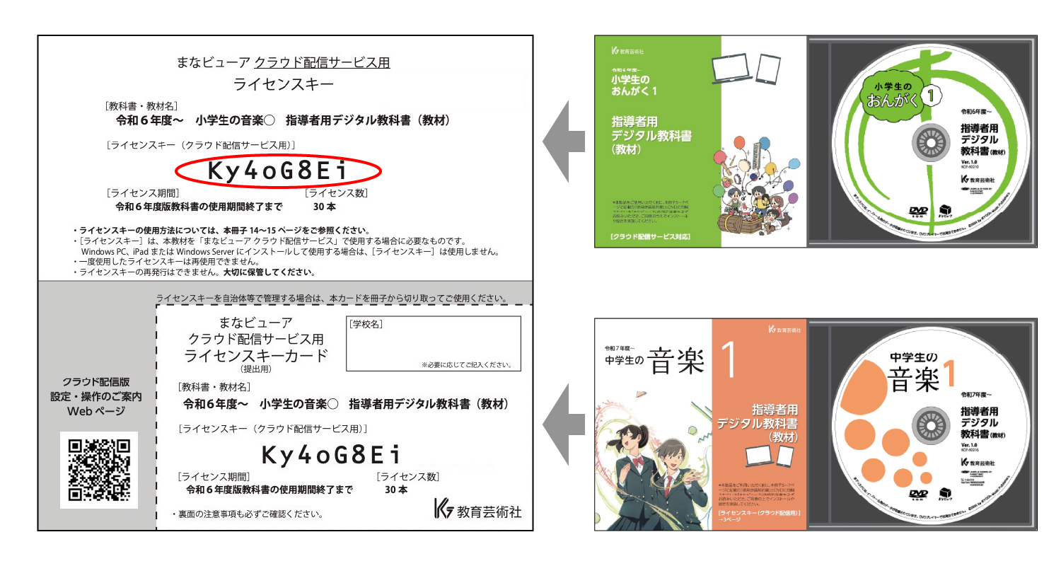 ※「指導者用デジタル教科書(教材)」の設定は、マニュアルの「ステップ②」で「ライセンスキー発行証が届いた場合(P.49)」をご参照ください。また、当社では「ライセンスキー発行証」に代えてDVD-ROMブックレットに「ライセンスキー」を記載しています。