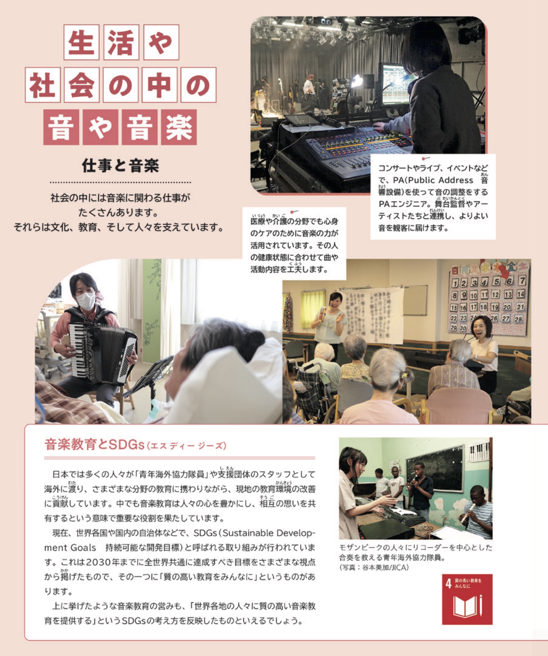 3年生では音楽とSDGs (持続可能な開発目標)の関わりを2つの視点で紹介しています。