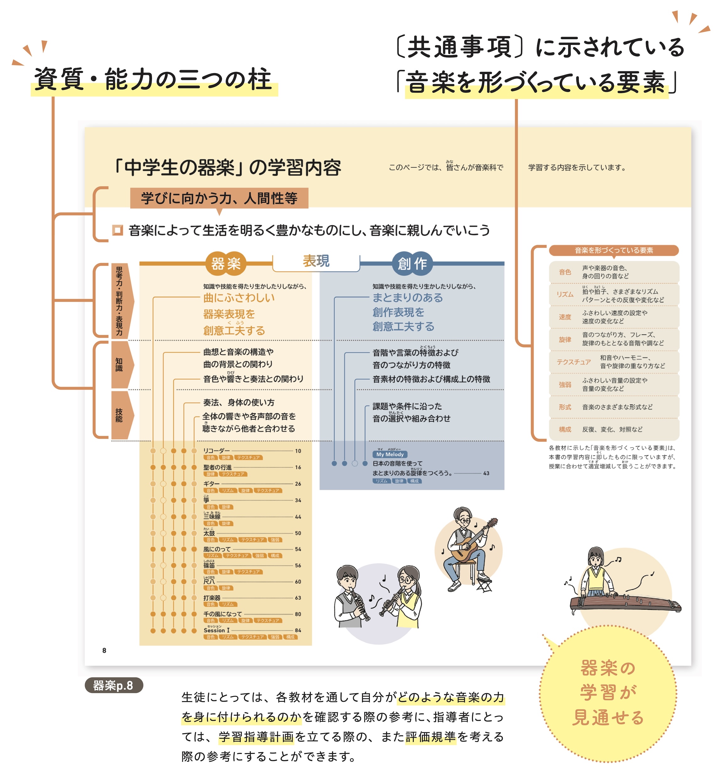 - 学習指導要領との関連(中学生の器楽)…p.45