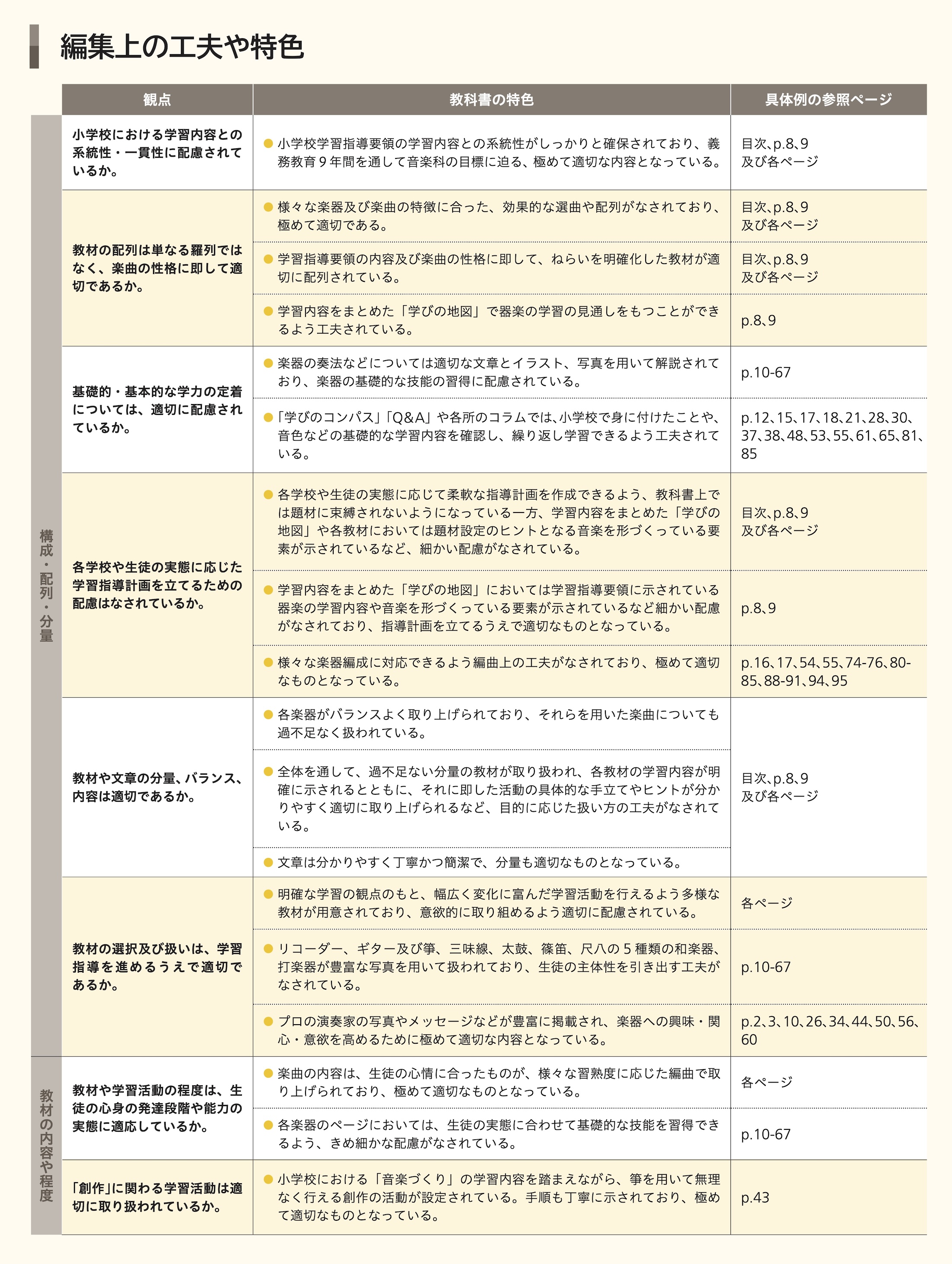 編集上の工夫や特色(中学生の器楽) p46 令和7年度 中学生の音楽・中学生の器楽