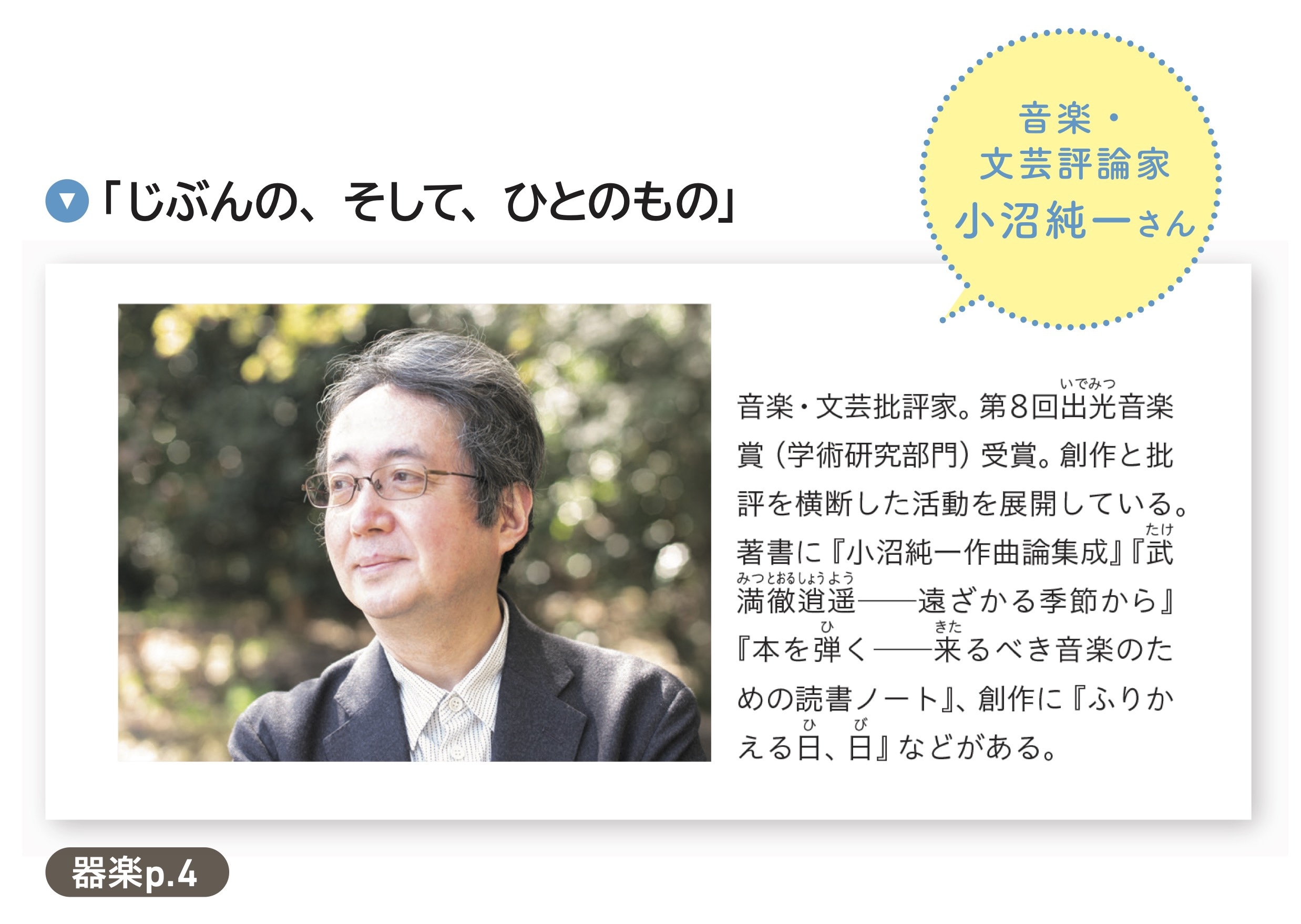 表紙では、音楽に触れたときの驚きや感動、音楽で表現する喜びを描きました …p.4